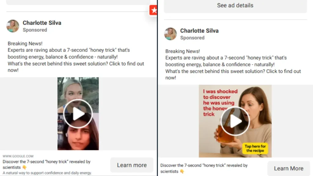 What’s more interesting is that despite talking for minutes, none of these videos actually explain the recipe. They never say how much honey, how much baking soda, or whether it’s supposed to be eaten, applied, mixed, heated, or used in any other way. The narrator keeps saying, “I can’t share the recipe here,” and then directs viewers to click a link that leads to a different website.